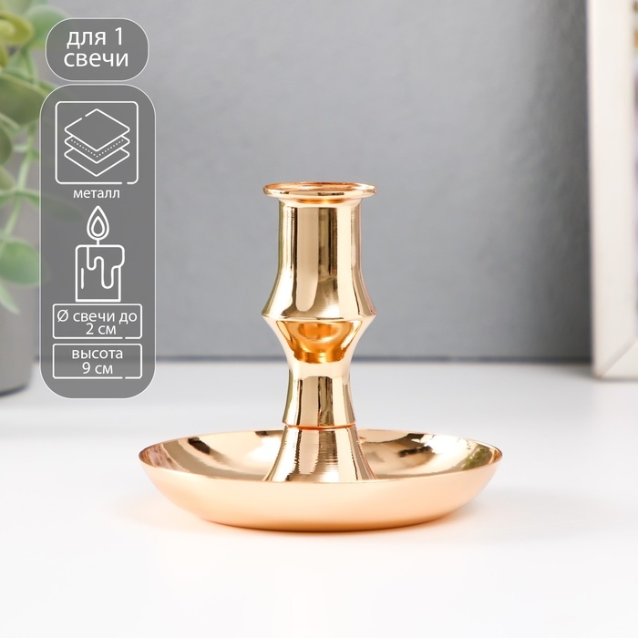 Подсвечник металл на 1 свечу d=2 см "Калланд" золото 10х10х9 см