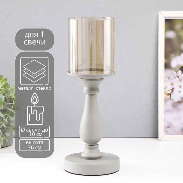Подсвечник металл на 1 свечу d=10 см "Воланд" серый 11х11х36 см