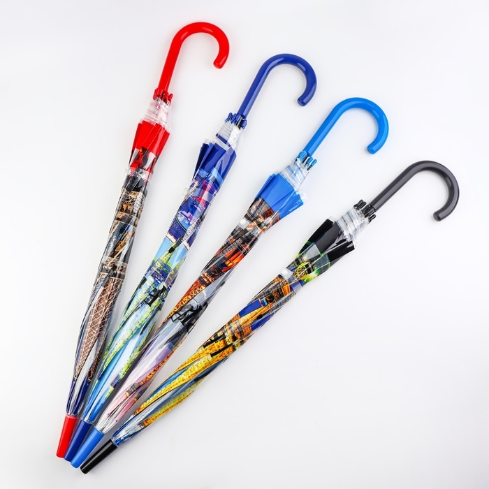 Зонт-трость п/авт R50/58 8сп ПВХ ГОЛОГРАФИЯ ручка-крюк