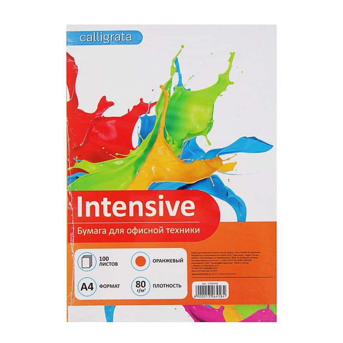 Бумага цветная А4, 100 листов Calligrata Интенсив, оранжевая, 80 г/м²