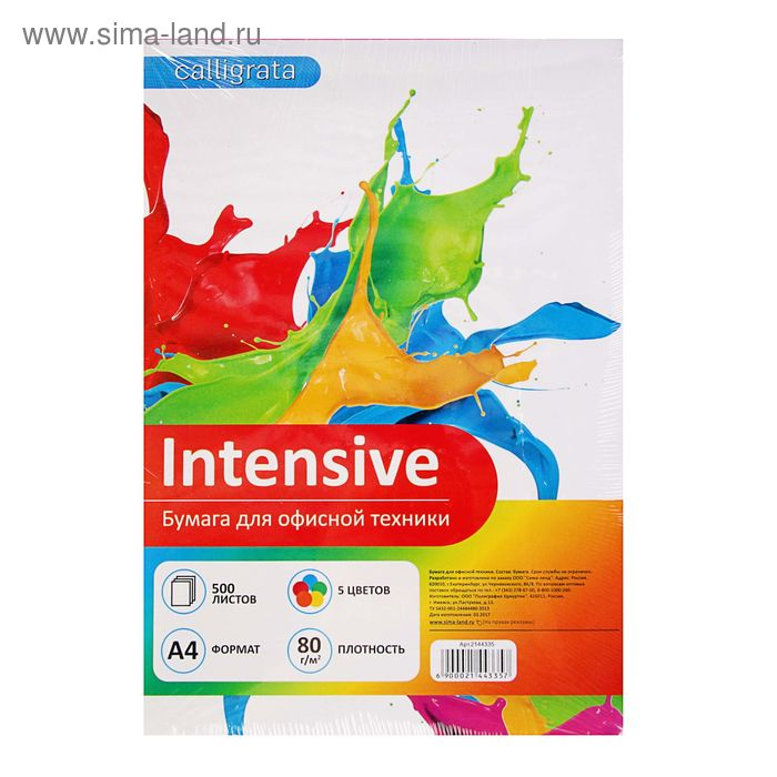 Бумага цветная А4, 500 листов Calligrata Интенсив, 5 цветов, 80 г/м²