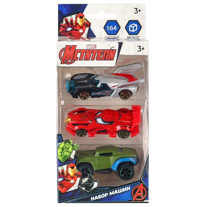 Набор металлических машин, 3 штуки, Мстители