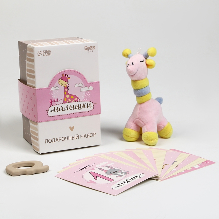 Набор подарочный: Мягкая игрушка+прорезыватель+карточки для фото "Жираф", 17 см.