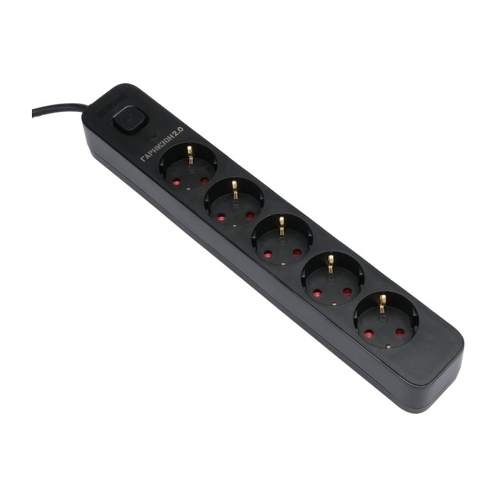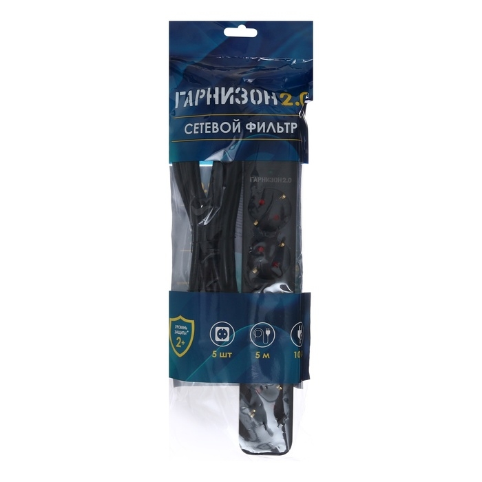 Сетевой фильтр Гарнизон 2.0 EPS-5-B-5, 5 р, 10А, 5м, ур.защиты 2+, черный