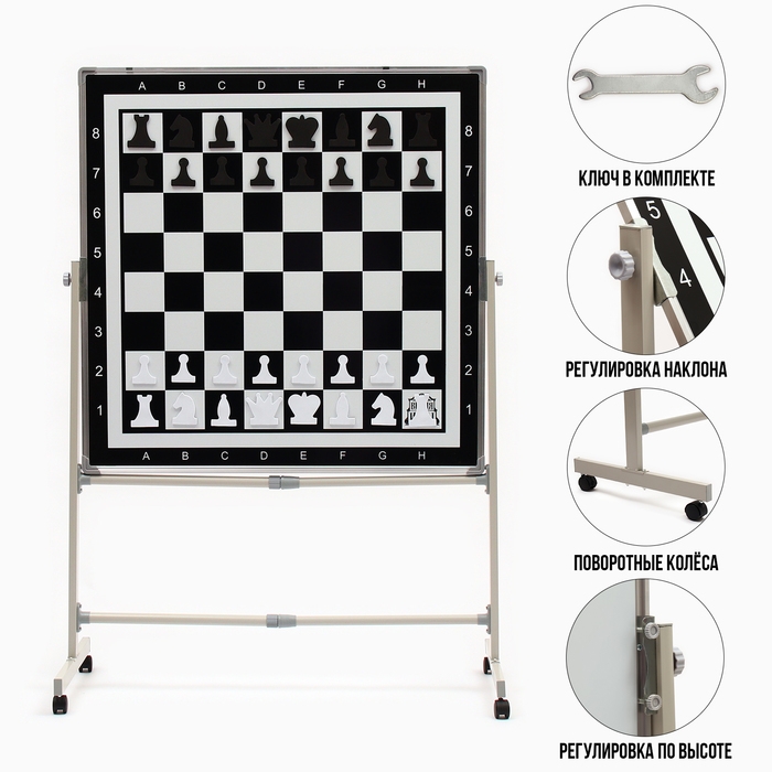 Доска магнитно-маркерная с шахматным полем, двусторонняя, мобильный стенд, 100 х 100 см