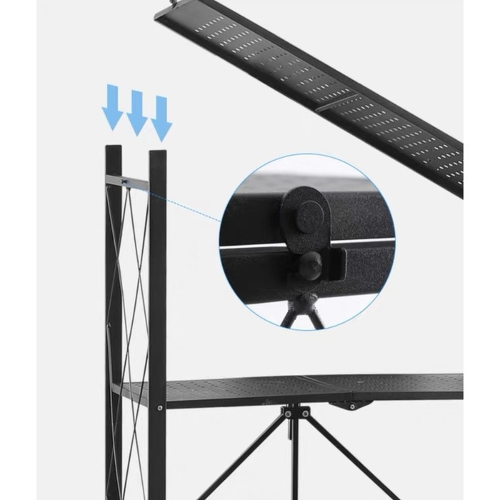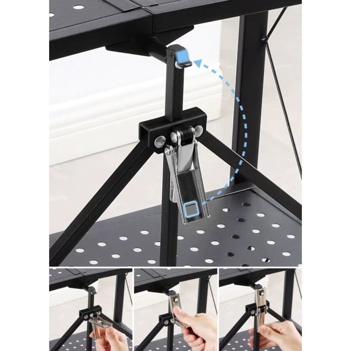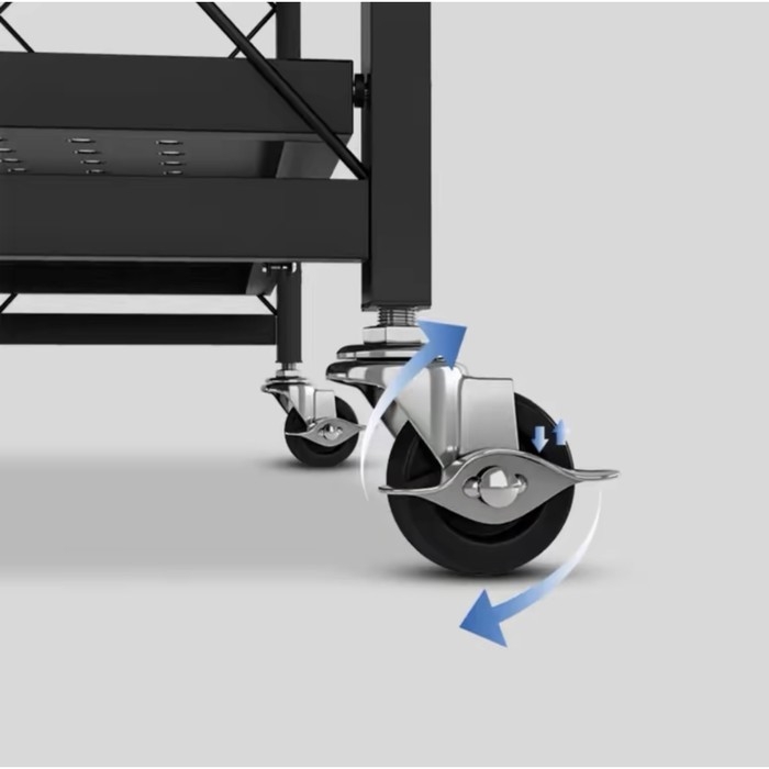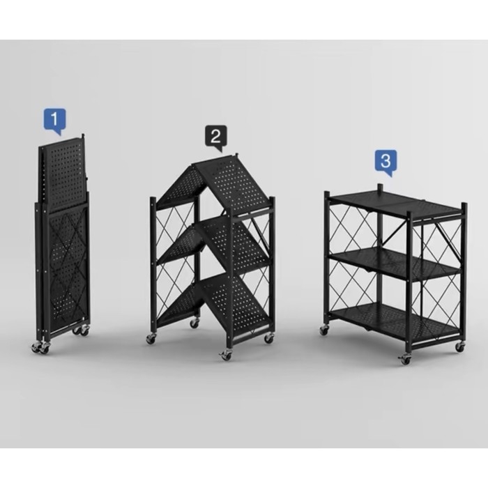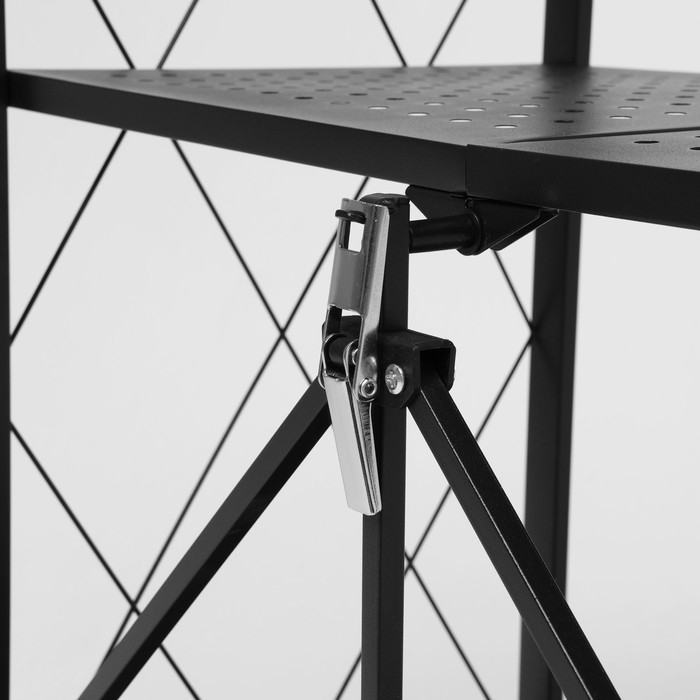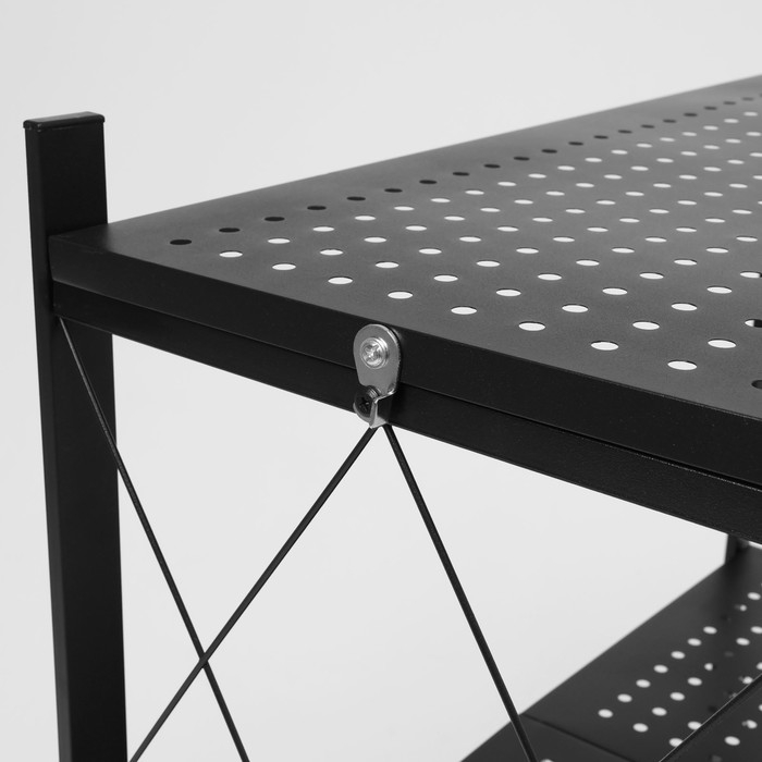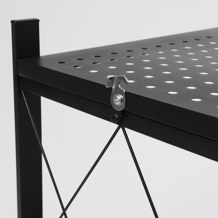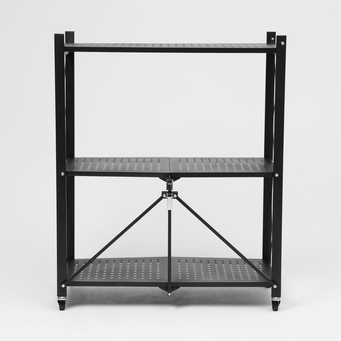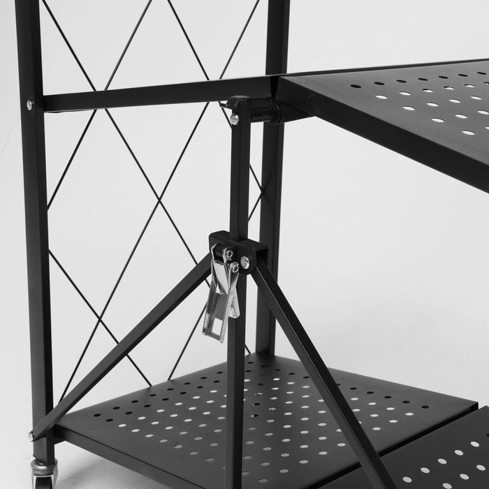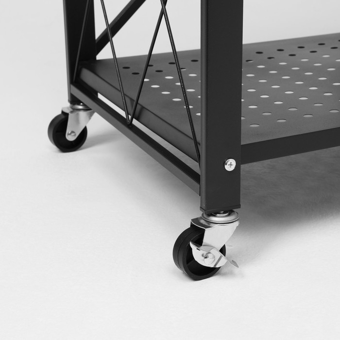 Стеллаж складной на колесах, 3 полки, 71×34×88 см, цвет чёрный матовый