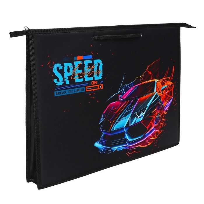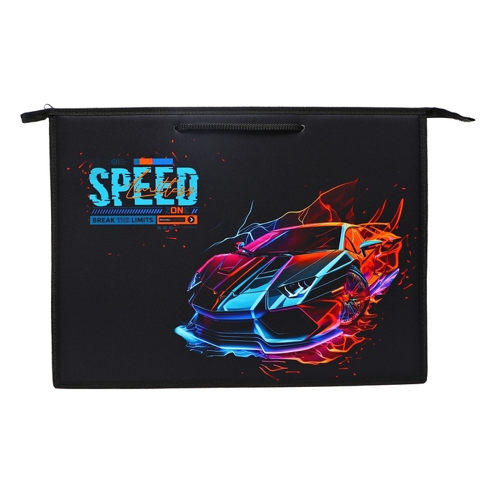 Папка для чертежей и рисунков A3, 470 х 345 х 50 мм, с ручками, пластик/текстиль, молния сверху, ПР 3 -20 "Супер-авто" 72694