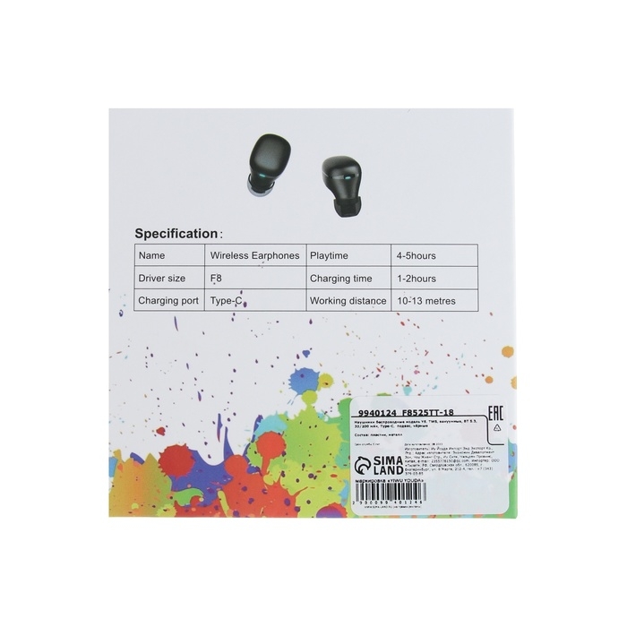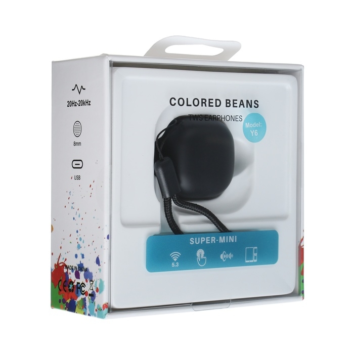 Наушники беспроводные Y6, TWS, вакуумные, BT 5.3, 30/200 мАч, Type-C, подвес, чёрные