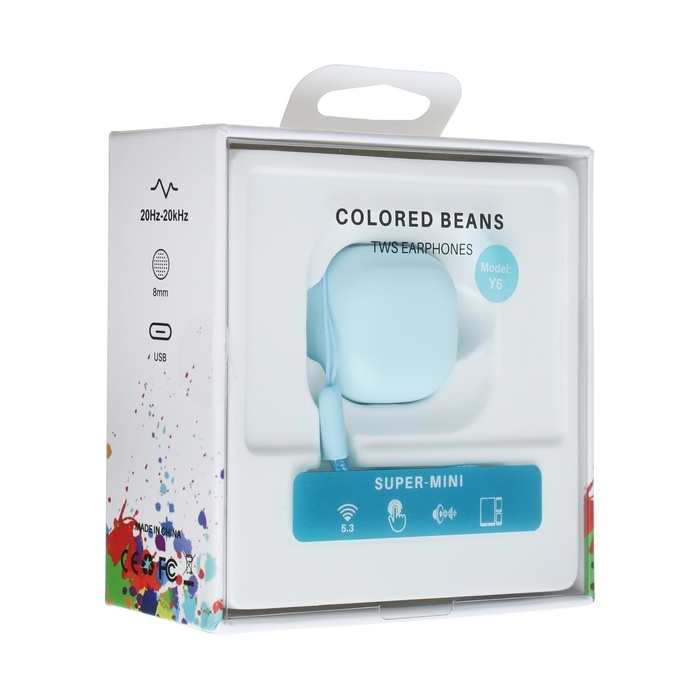 Наушники беспроводные Y6, TWS, вакуумные, BT 5.3, 30/200 мАч, Type-C, подвес, голубые