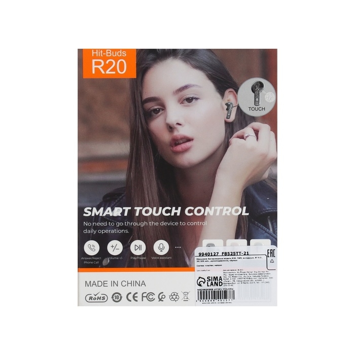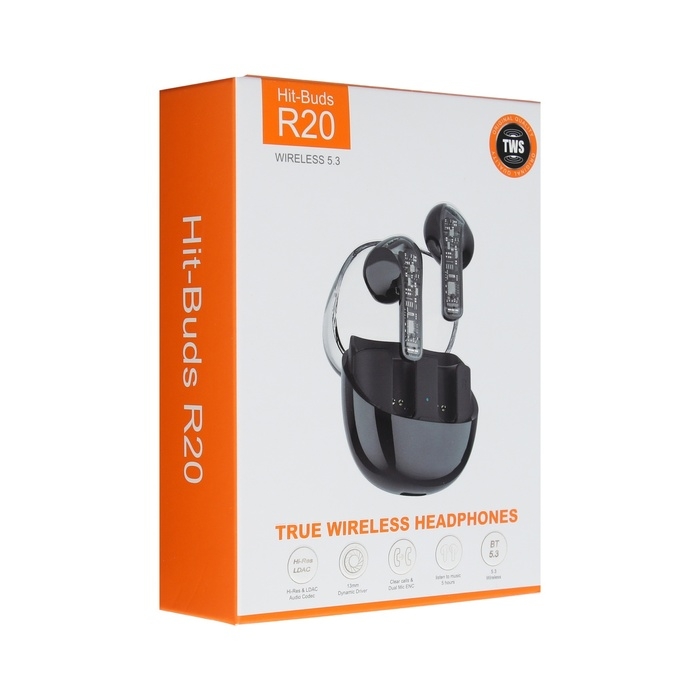 Наушники беспроводные R20, TWS, вкладыши, BT 5.3 , 30/200 мАч, шумоподавление, чёрные