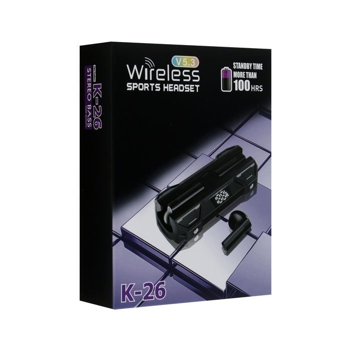 Наушники беспроводные K26, TWS, вкладыши, BT 5.0, 35/260 мАч, дисплей, чёрные