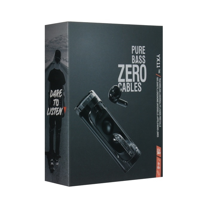 Наушники беспроводные YX11, TWS, вкладыши, BT 5.3. 28/200 мАч, шумоподав, прозрачные, чёрные