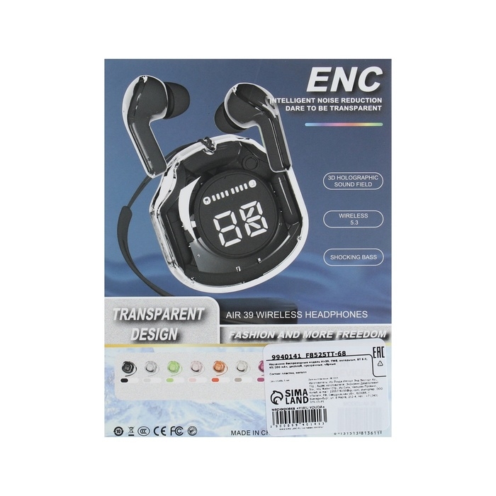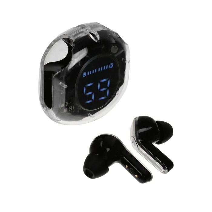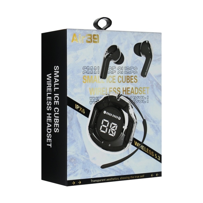 Наушники беспроводные Air39, TWS, вакуумные, BT5.0, 45/200 мАч, дисплей, прозрачные, чёрные