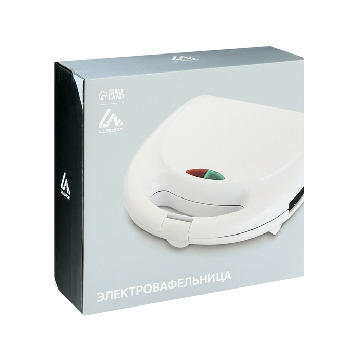 Электровафельница Luazon WV-02, 750 Вт, венские вафли, антипригарное покрытие, белая