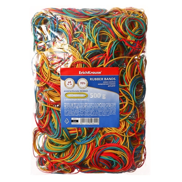 Банковская резинка, 500 г, ErichKrause, диаметр 40/60 мм, длина 60/100 мм, в пакете, микс