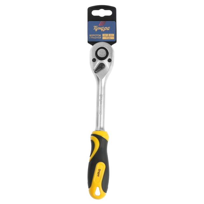 Вороток с трещоткой ТУНДРА, CrV, квадрат 1/2", 2К рукоятка, 72 зубца, 250 мм