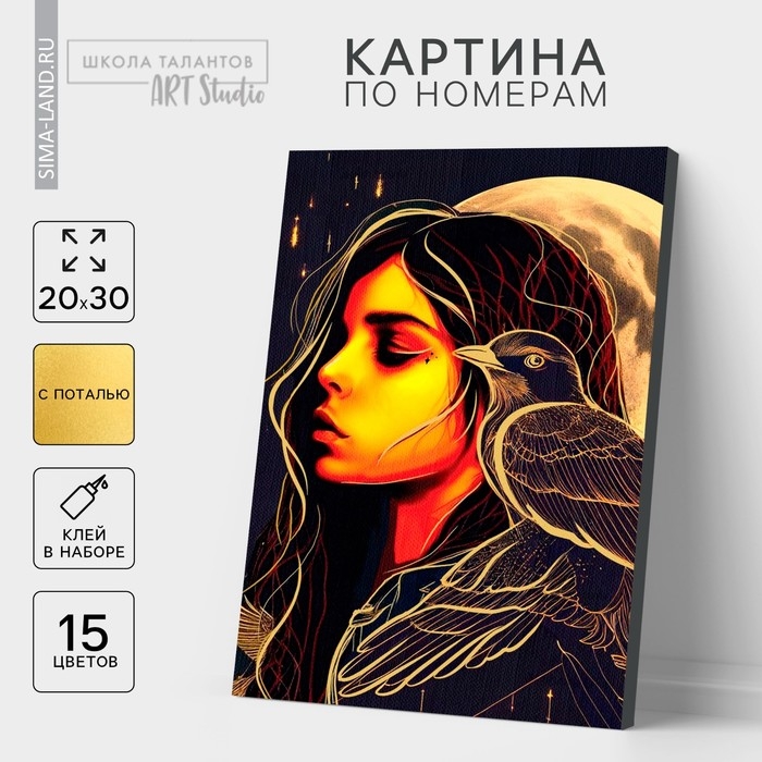 Картина по номерам с подрамником и поталью «Золотой ворон», 20 х 30 см