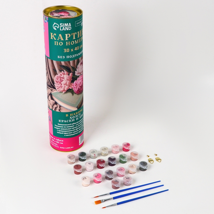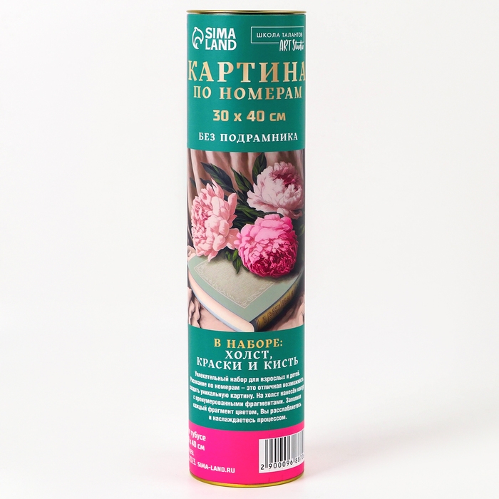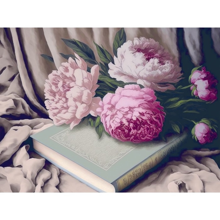 Картина по номерам в тубусе «Пионы с книгой», 30 х 40 см понравится и детям, и взрослым.
