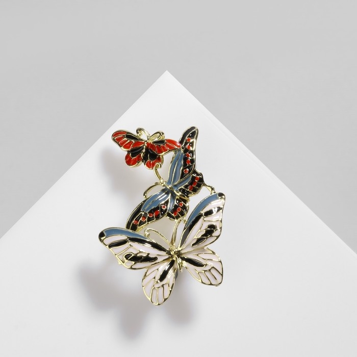 Брошь «Бабочки» трио, цветная в золоте