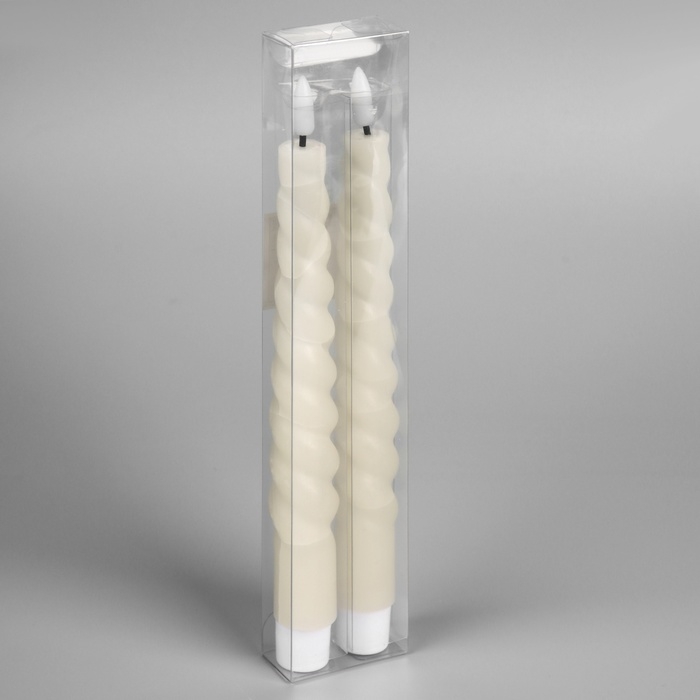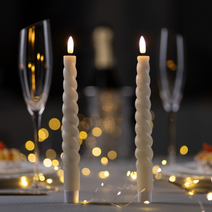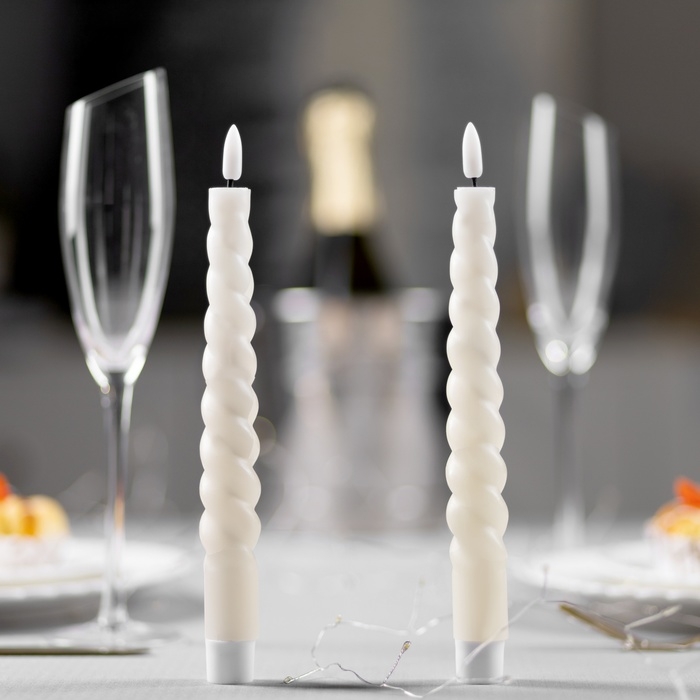 Набор светодиодных витых свечей, белые, 2 × 25 × 2 см, пластик, воск, батарейки АААх2 (не в комплекте), свечение тёплое белое, 2 шт.