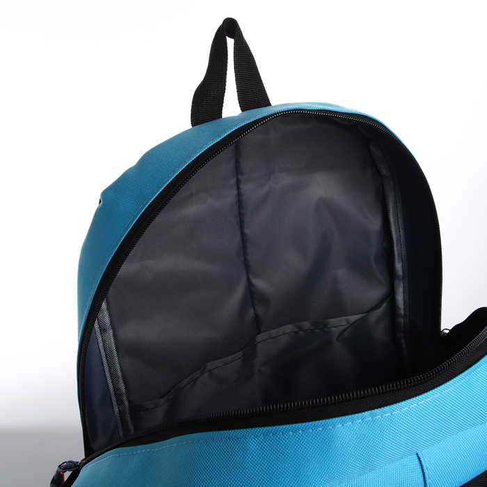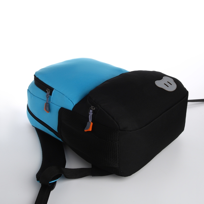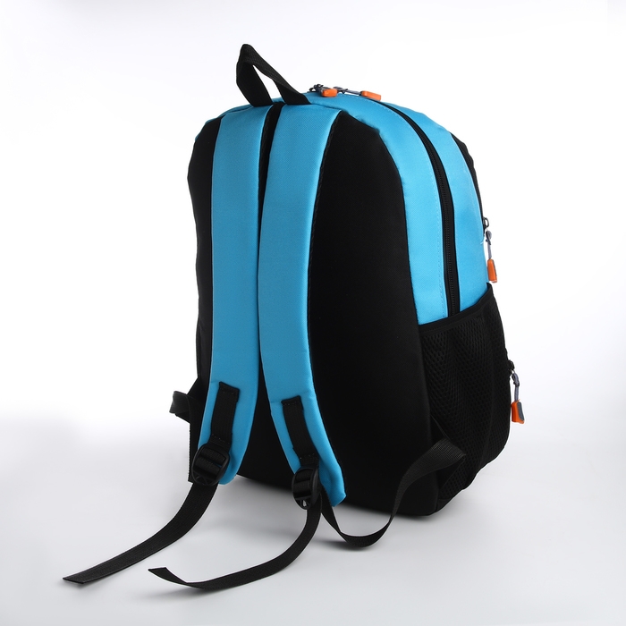 Рюкзак школьный, 2 отдела молнии, 3 кармана, цвет чёрный/голубой