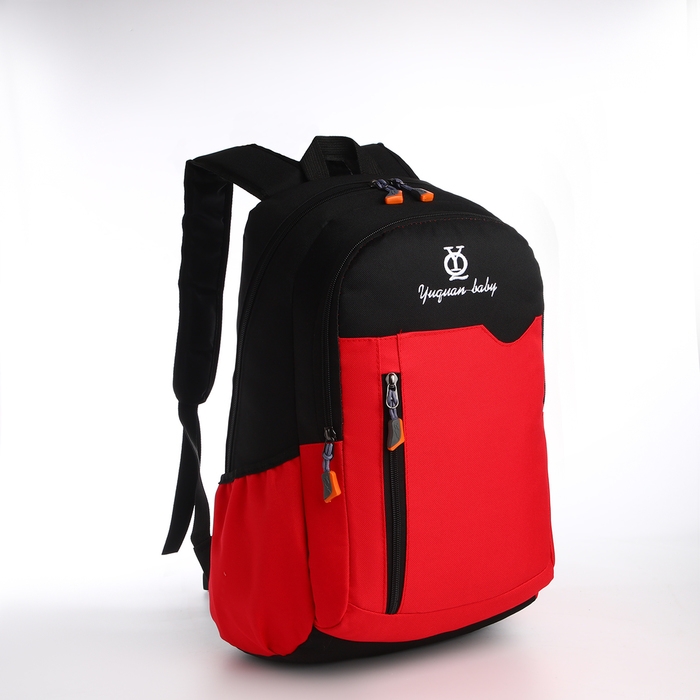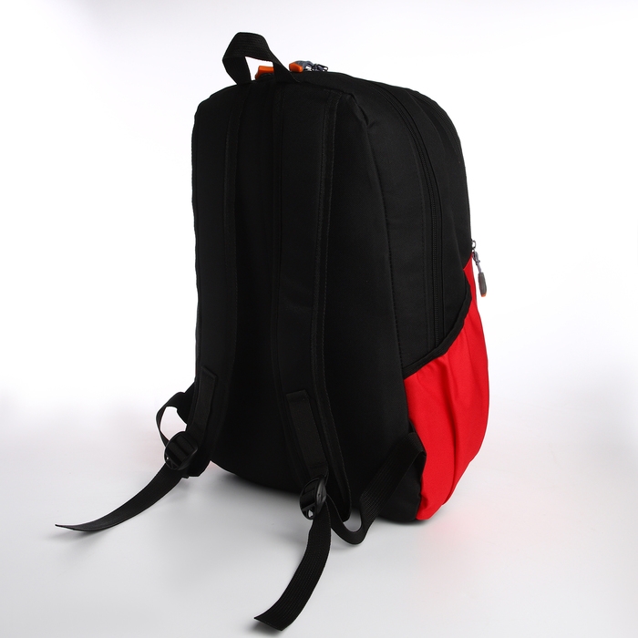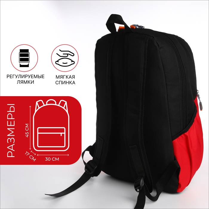 Рюкзак школьный, 2 отдела на молнии, 3 кармана, цвет чёрный/красный
