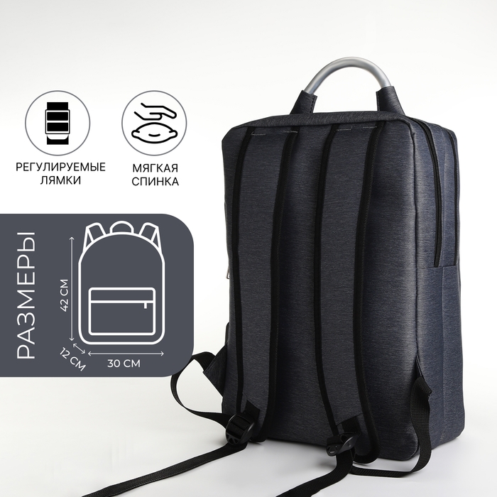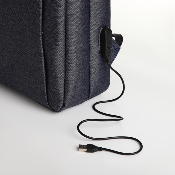 Рюкзак городской на молнии, 2 кармана, с USB, цвет синий