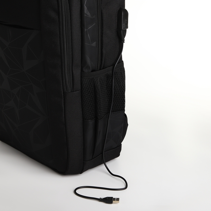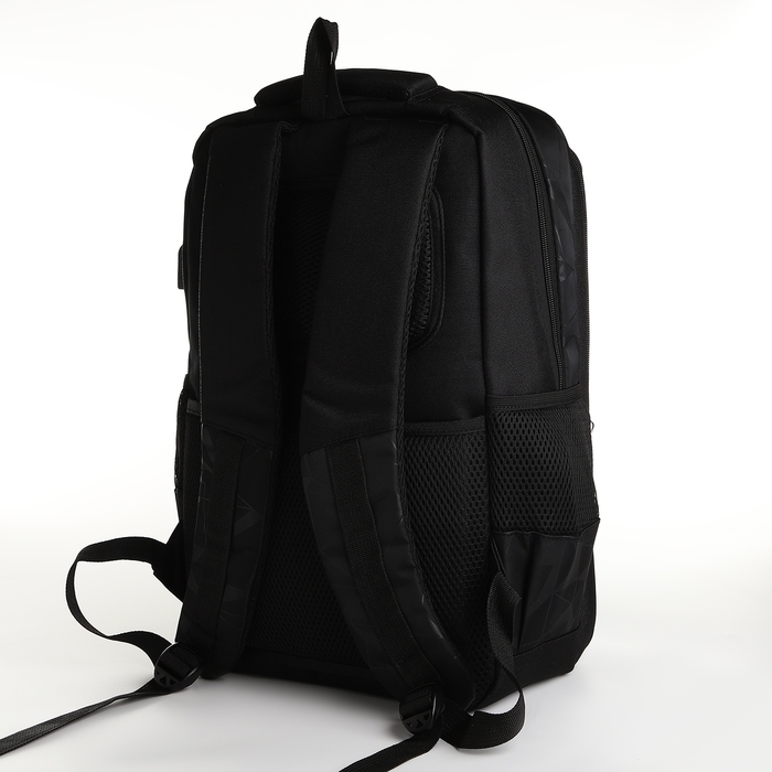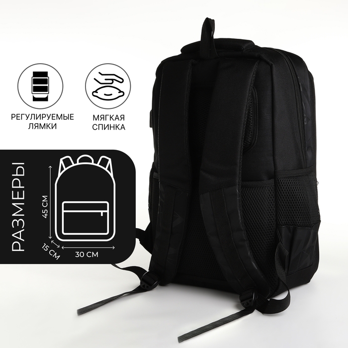 Рюкзак школьный, 2 отдела на молнии, 4 кармана, с USB, цвет чёрный