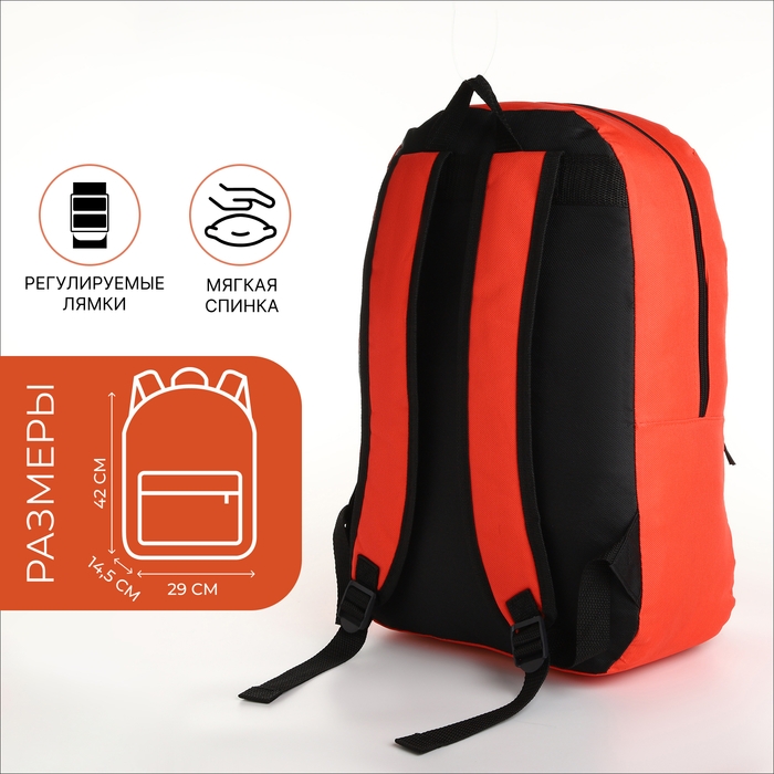 Рюкзак школьный на молнии, наружный карман, цвет красный