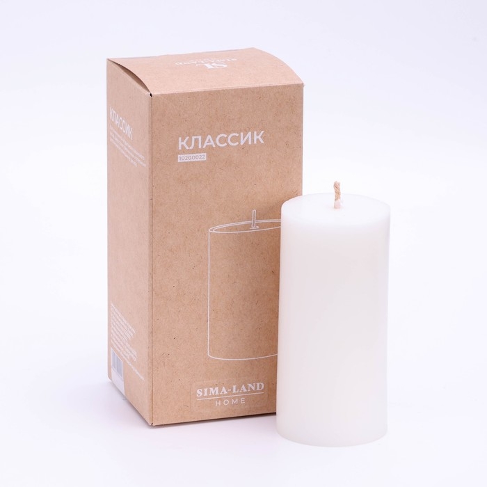 Свеча-цилиндр гладкая,5х10 см, пальмовый воск, белая, Sima Home