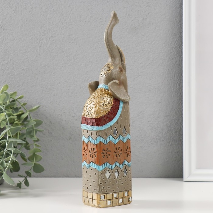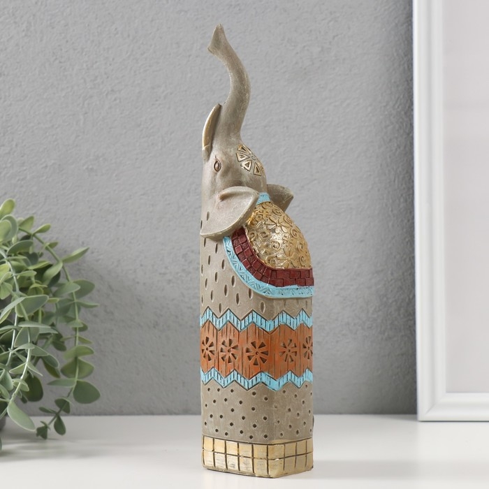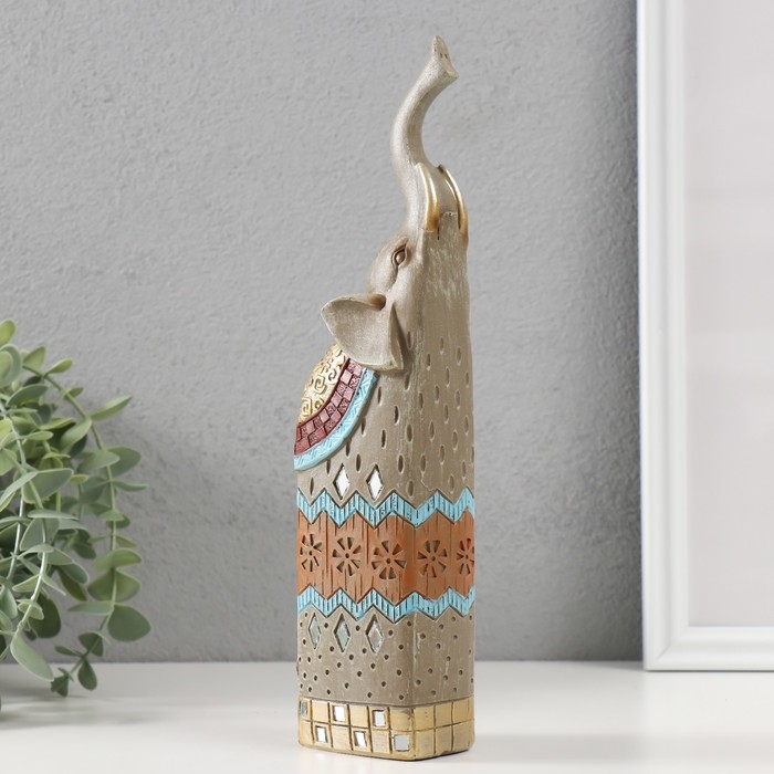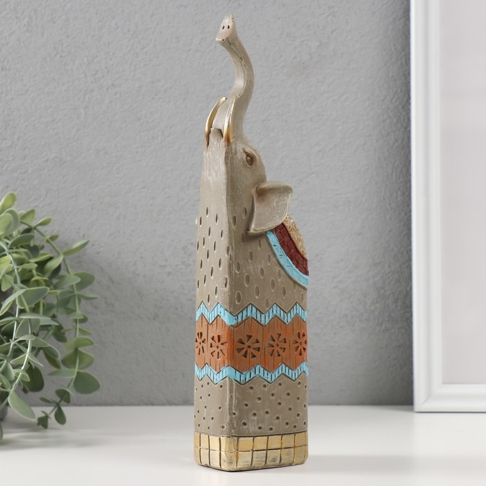 Сувенир полистоун "Серый слон с хоботом вверх" 5,5х6х27 см