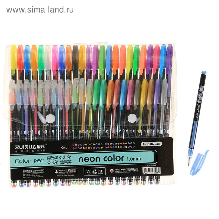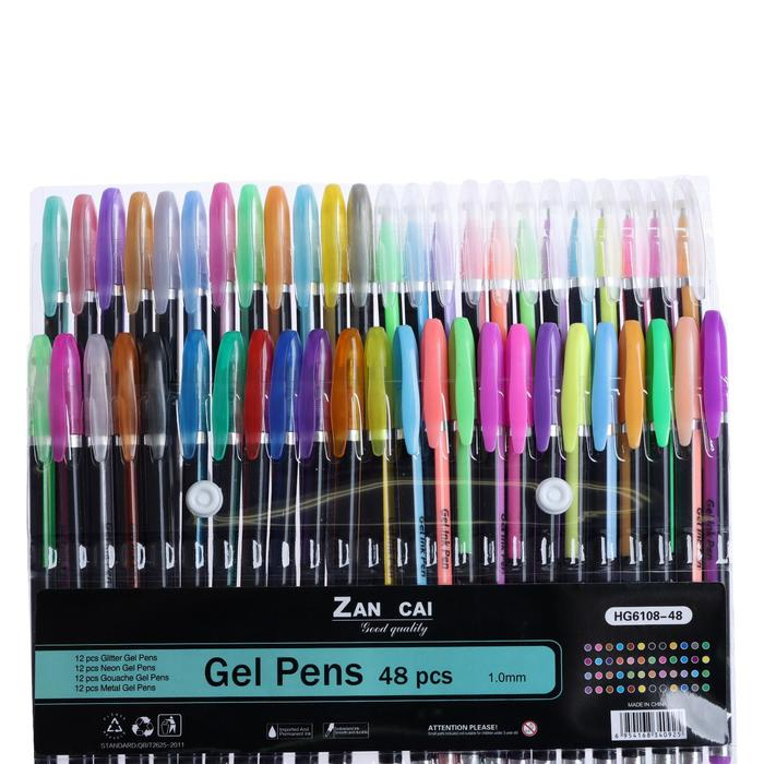 Набор гелевых ручек, 48 цвета, корпус с рисунком, в блистере на кнопке