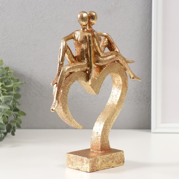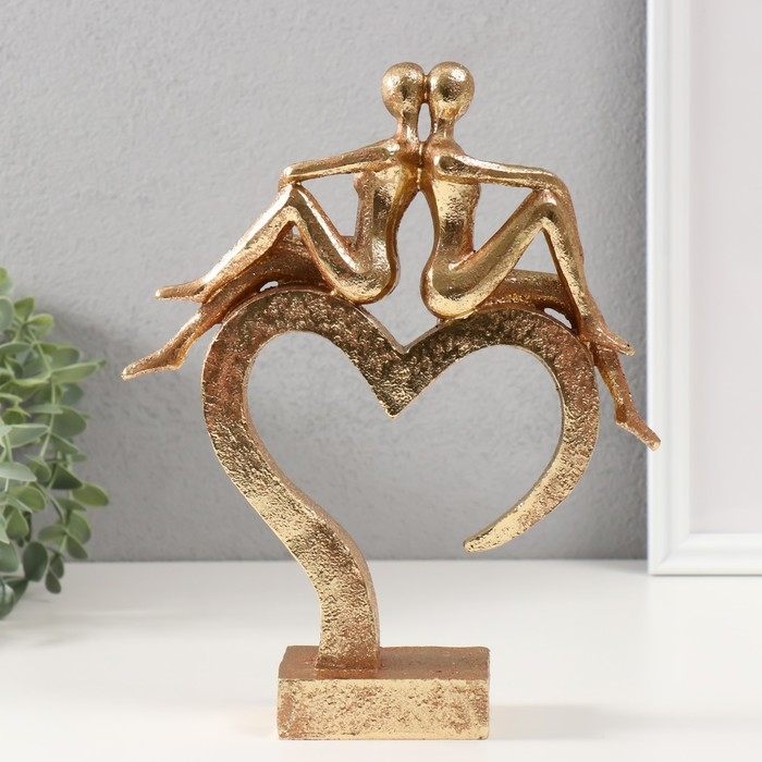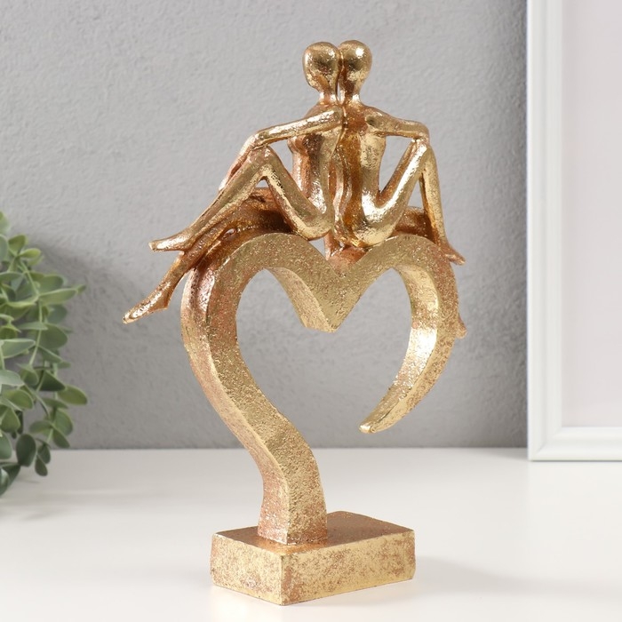 Сувенир полистоун "Влюблённые на сердце" золото 26х22х6 см