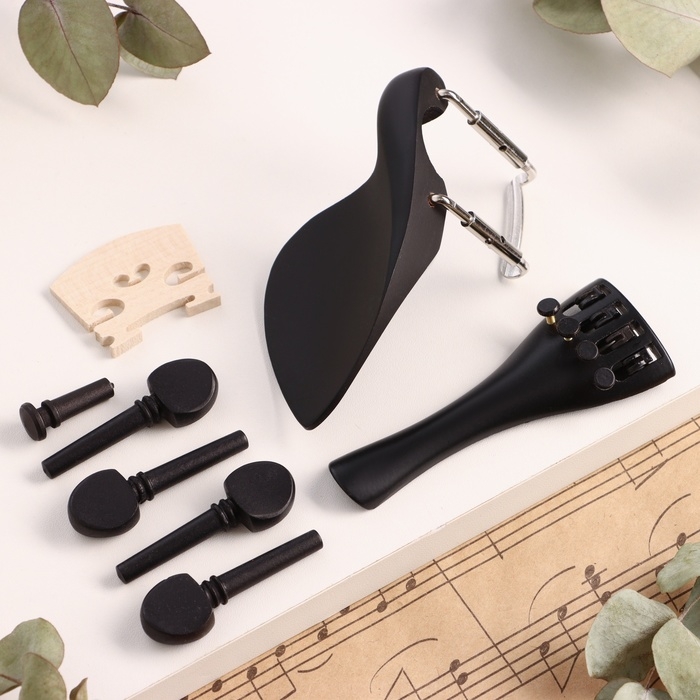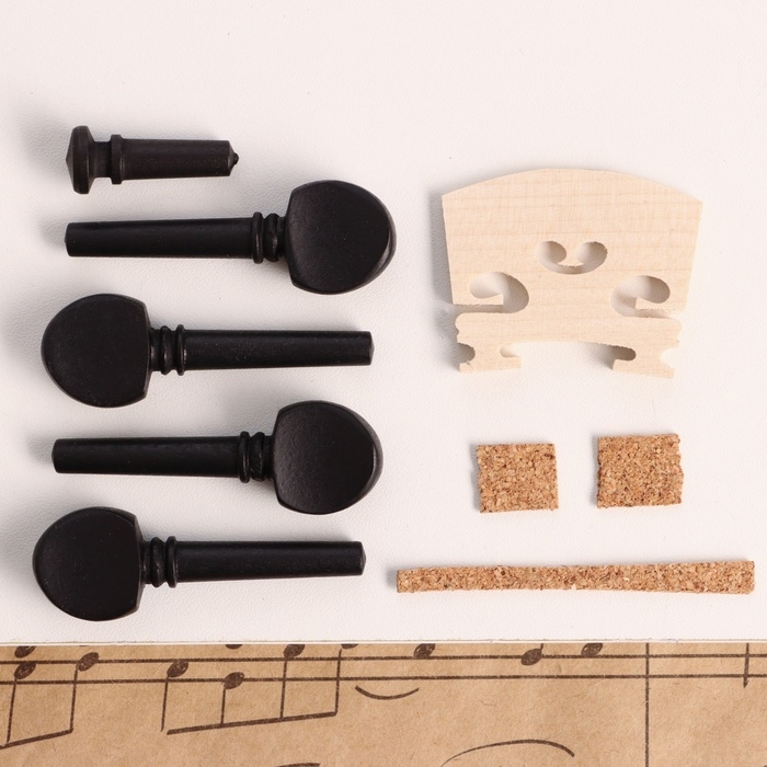 Набор аксессуаров для скрипки: Подставка, Колки, подбородник, струнодержатель, 1/2