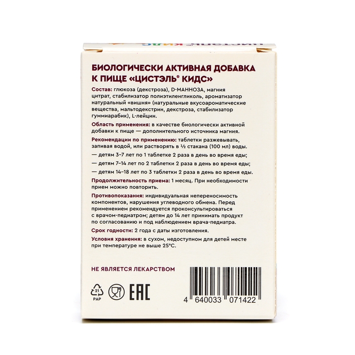 Витамины для детей Цистэль Кидс со вкусом вишни, 20 таблеток массой 2,4 г