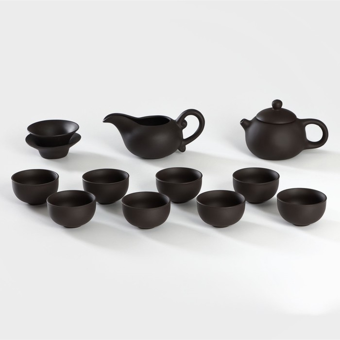 Набор для чайной церемонии керамический «Глина», 11 предметов: 8 пиал 40 мл, чайник, молочник, ступка, цвет коричневый