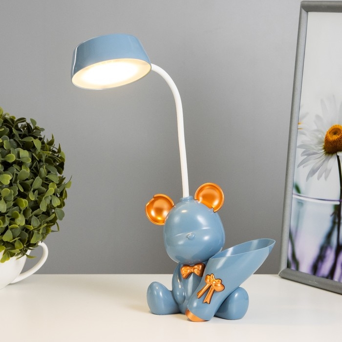 Настольная лампа с точилкой "Мишка" LED 2Вт 3000К USB АКБ синий 15х14х30 см