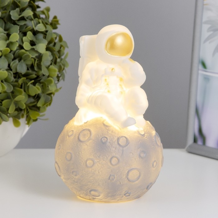 Ночник "Космонавт на луне" LED от батареек 3хLR44 бело-черный 10х10х17 см