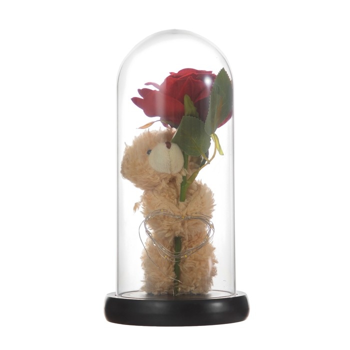Ночник "Мишка с цветком" LED от батареек 3хLR44 11х11х21 см