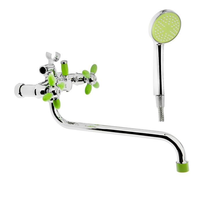 Cмеситель для ванны Accoona A7182K, двухвентильный, с душевым набором, силумин, зеленый/хром
