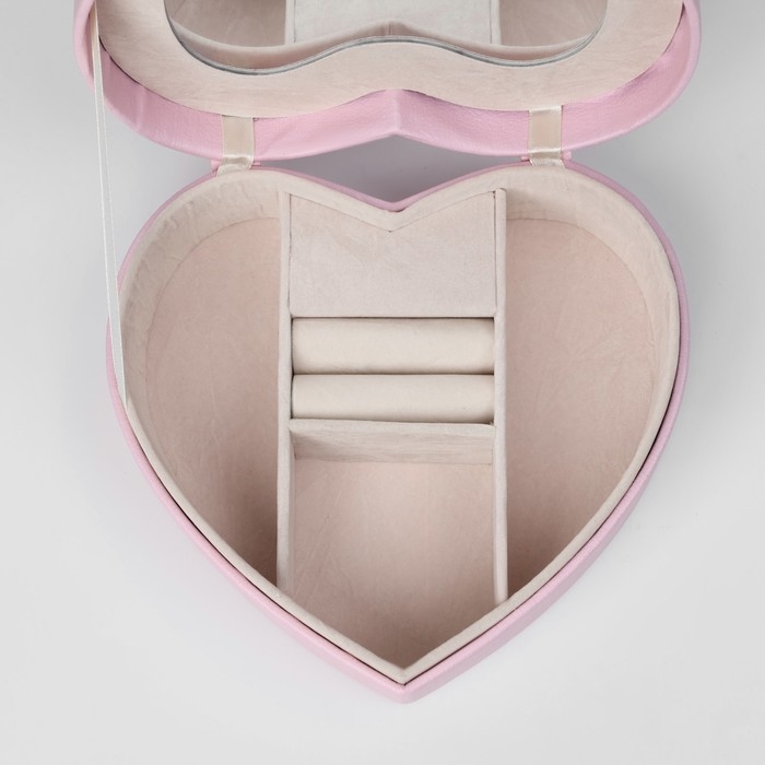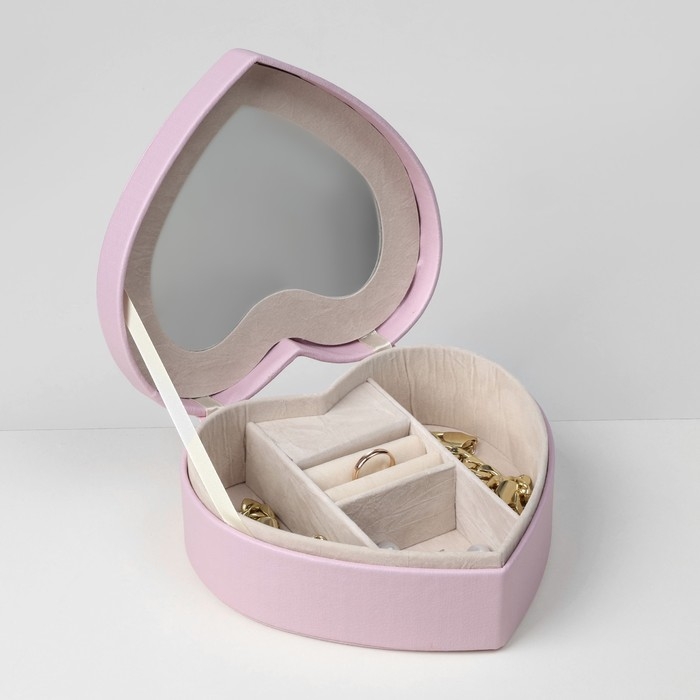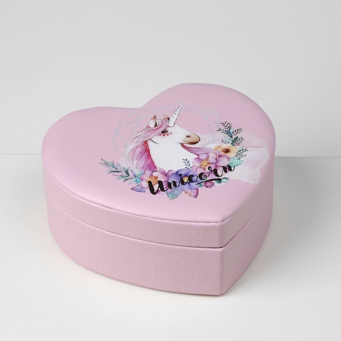 Органайзер для украшений портативный с зеркалом «Шкатулка сердце единорог», 17×15×7 см, цвет розовый