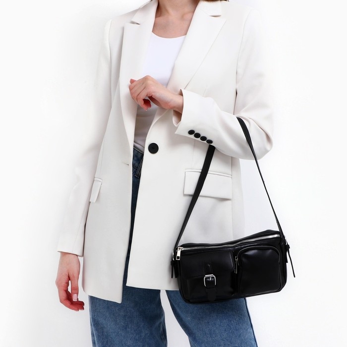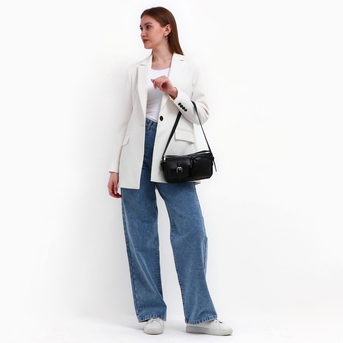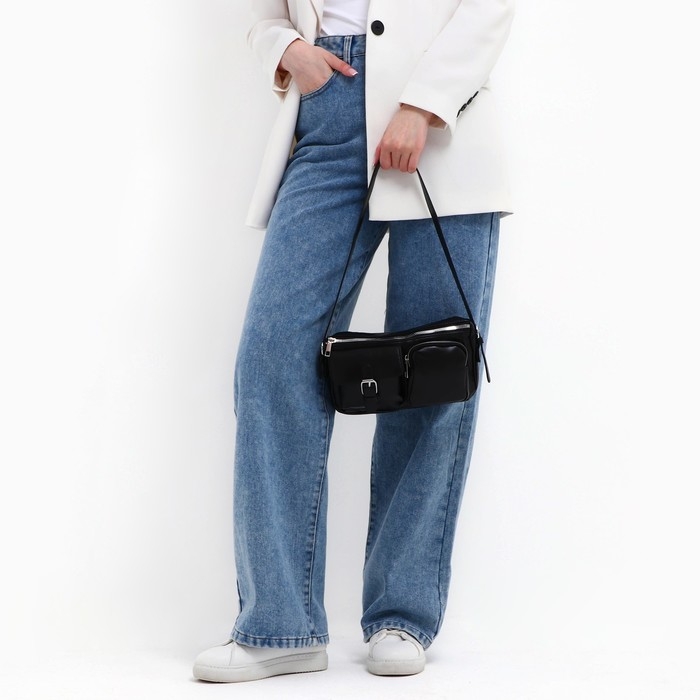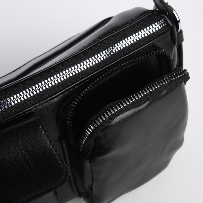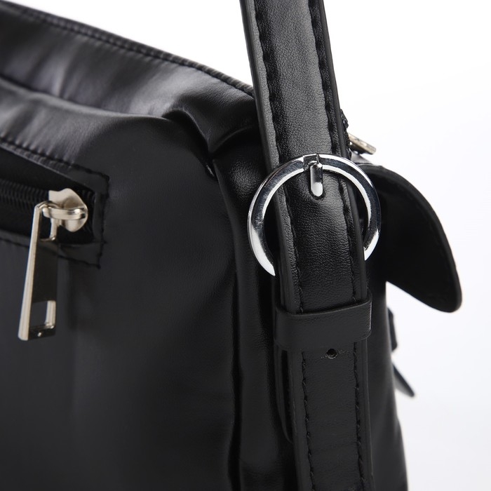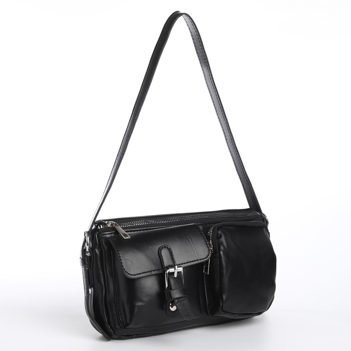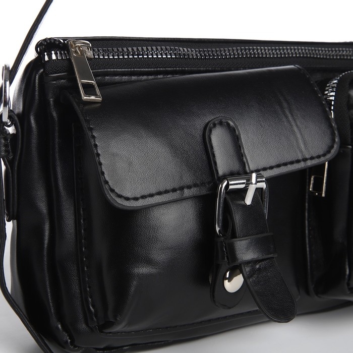 Сумка женская с карманами кожзам, черный цвет