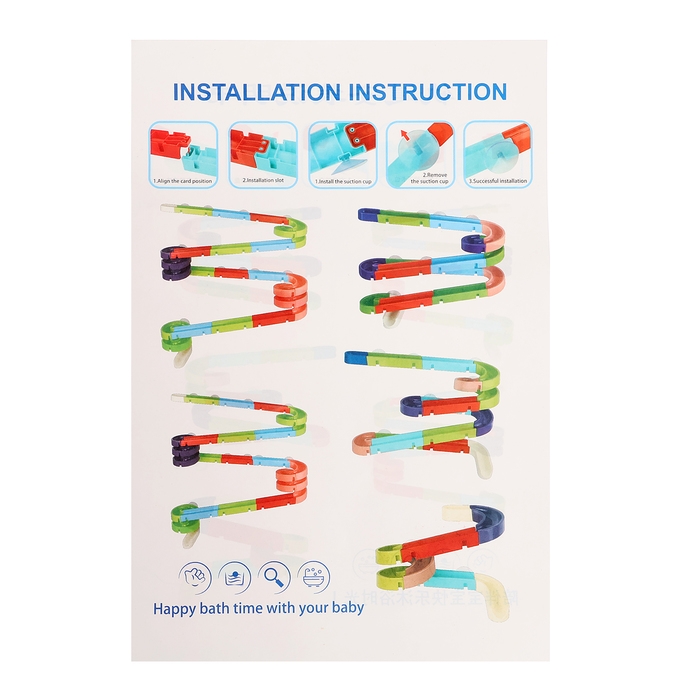 Трек для игры в ванной «Утиная горка», на присосках, крепится на стену