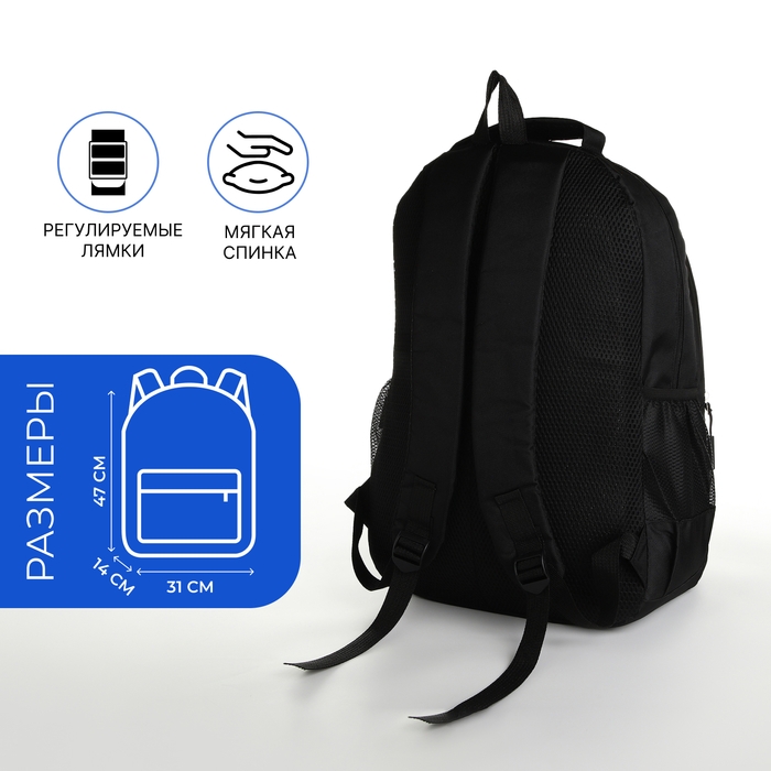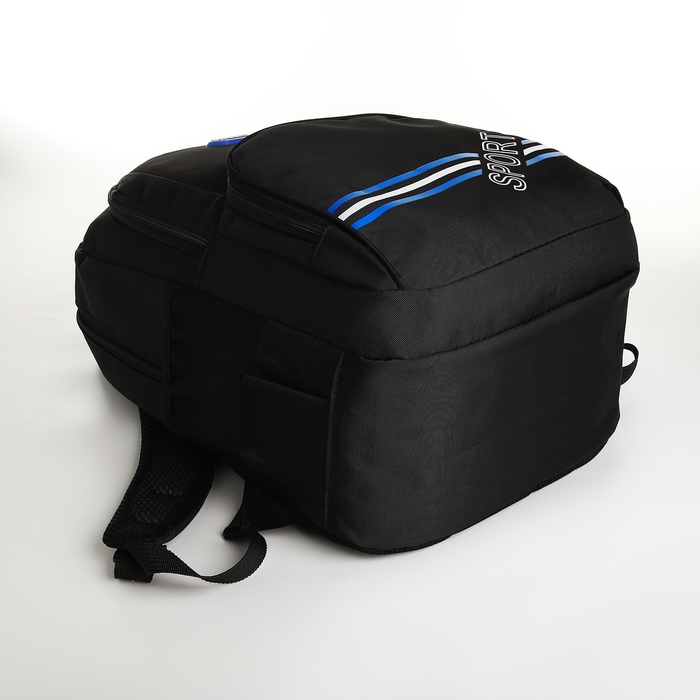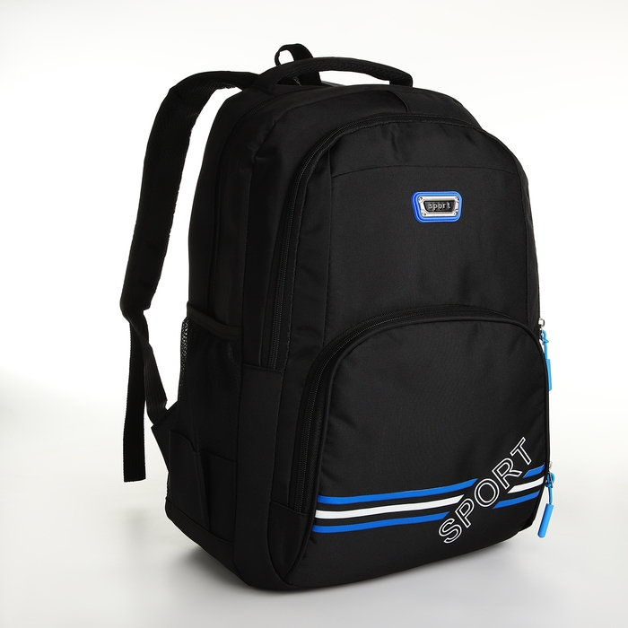 Рюкзак школьный на молнии, 4 кармана, цвет чёрный/синий