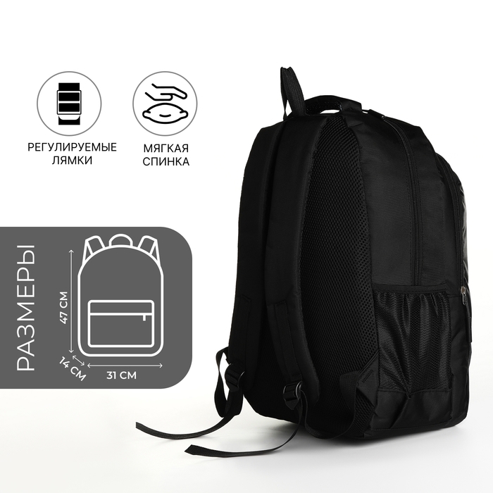 Рюкзак школьный на молнии, 4 кармана, цвет чёрный/серый