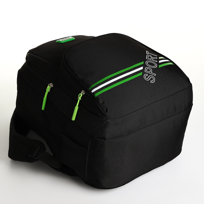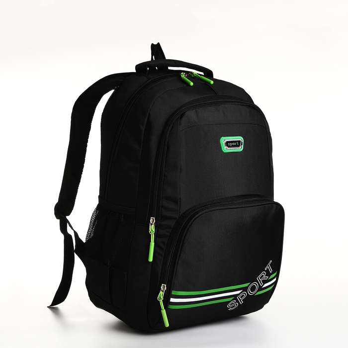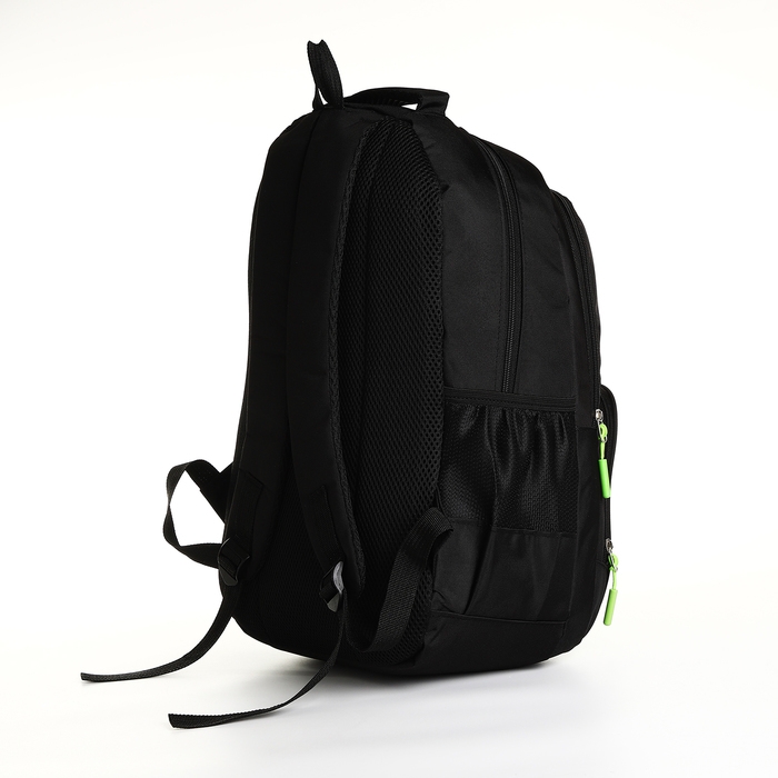 Рюкзак школьный на молнии, 4 кармана, цвет чёрный/зелёный