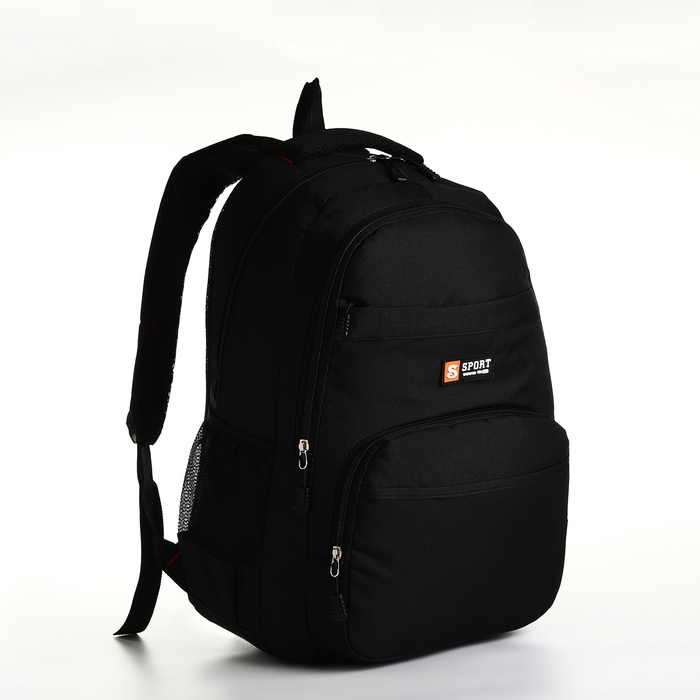 Рюкзак школьный на молнии, 6 карманов, цвет чёрный