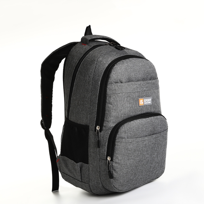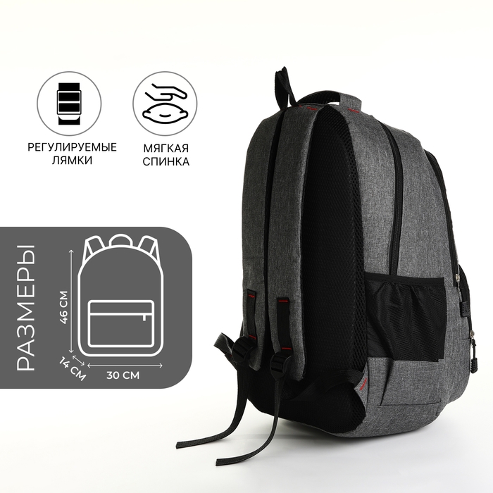 Рюкзак школьный на молнии, 6 карманов, цвет серый