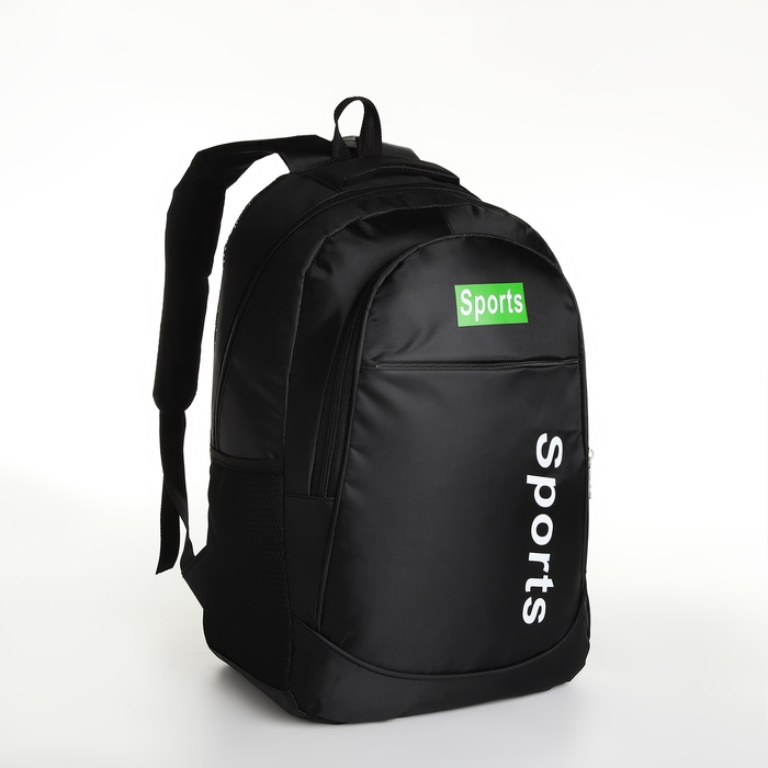 Рюкзак школьный на молнии, 4 кармана, цвет чёрный/зелёный