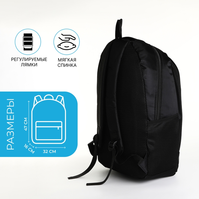Рюкзак школьный на молнии, 4 кармана, цвет чёрный/синий